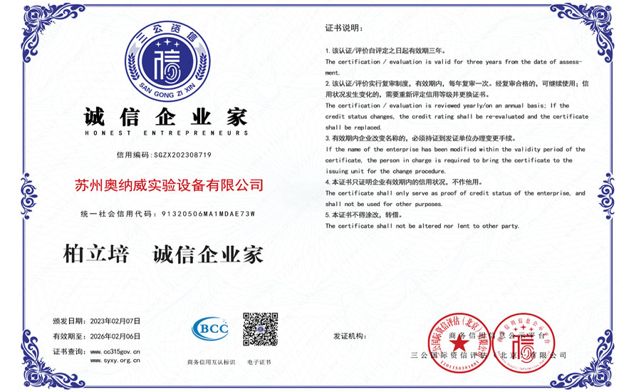 誠信建設萬里行——奧納威3A誠信認證完成